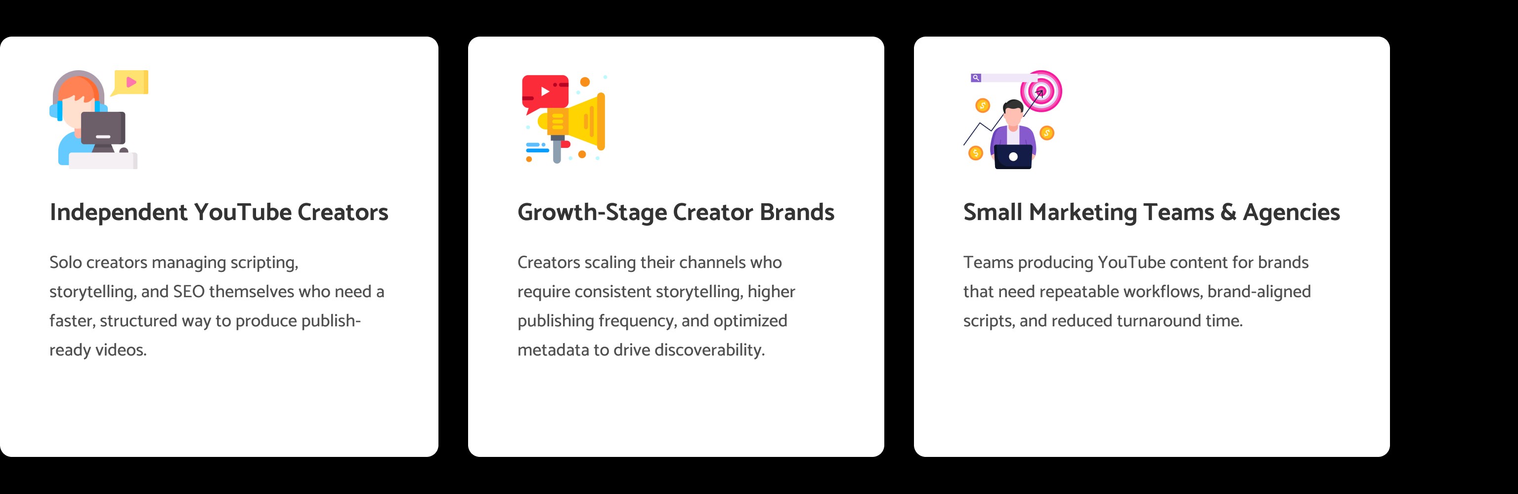 Discovery research with 38 creators and 6 small marketing teams revealed that producing a single YouTube video required 4–6 hours, with scripting and story structuring consuming nearly 50% of total effort.